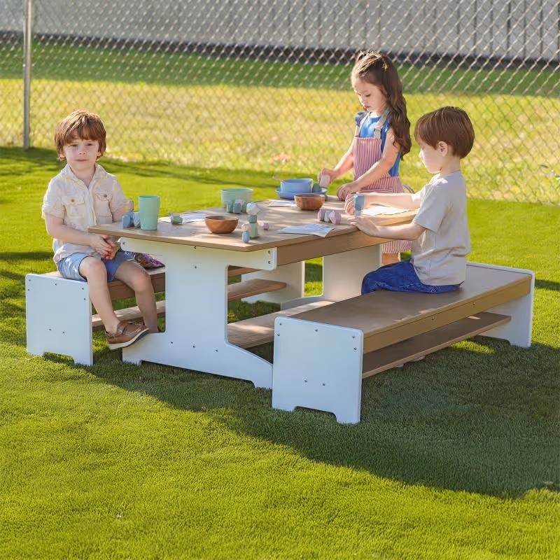 These tables and benches encourage hands-on exploration, teamwork, and creative play, making them perfect for art, science, sensory activities, and structured group lessons.