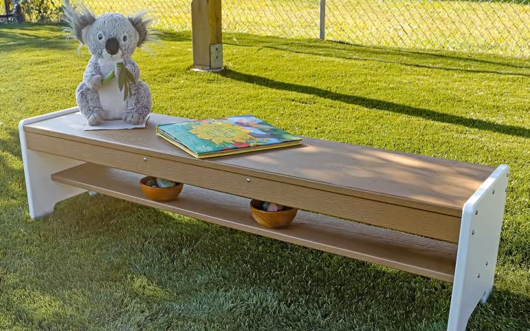 Add comfortable seating to your outdoor learning area! This outdoorED™ bench features a storage shelf beneath the seat that’s ideal for books, toys, or supplies, and pairs perfectly with the outdoorED™ Table for a complete activity space. Constructed with textured woodgrain maple and high‑quality thermoplastic, it stands up to sun, rain, mold, and everyday outdoor classroom use.